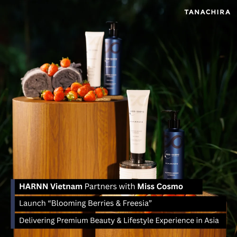HARNN Vietnam, under the management of TANACHIRA Group and led by Mr. Dennis Tuan Huy, Country Manager of TANACHIRA Vietnam, is driving regional growth in the beauty business through a key collaboration with Miss Cosmo. The partnership marks the launch of the new “Blooming Berries & Freesia” collection, featuring a refreshing scent of tropical berries and freesia, along with two hero products: Body Wash and Face Wash.