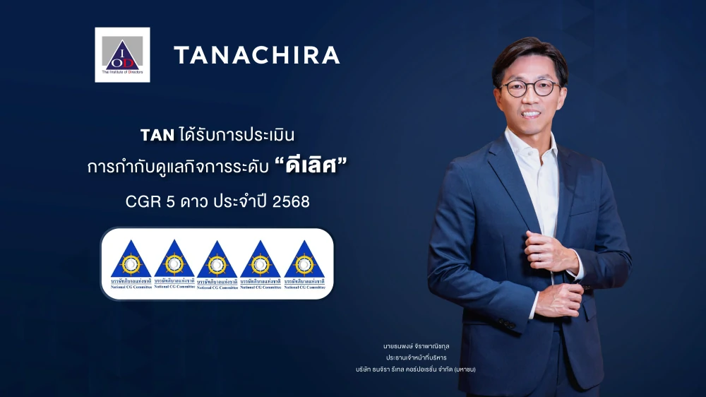 Receiving this recognition is a proud milestone for Tanachira Group, reaffirming its commitment to creating long-term value for business, society, and the environment. The Group remains steadfast in upholding good governance and development policies as guiding principles for stable and sustainable growth, ensuring the greatest benefit to all stakeholders while continuing to move forward toward a sustainable future.